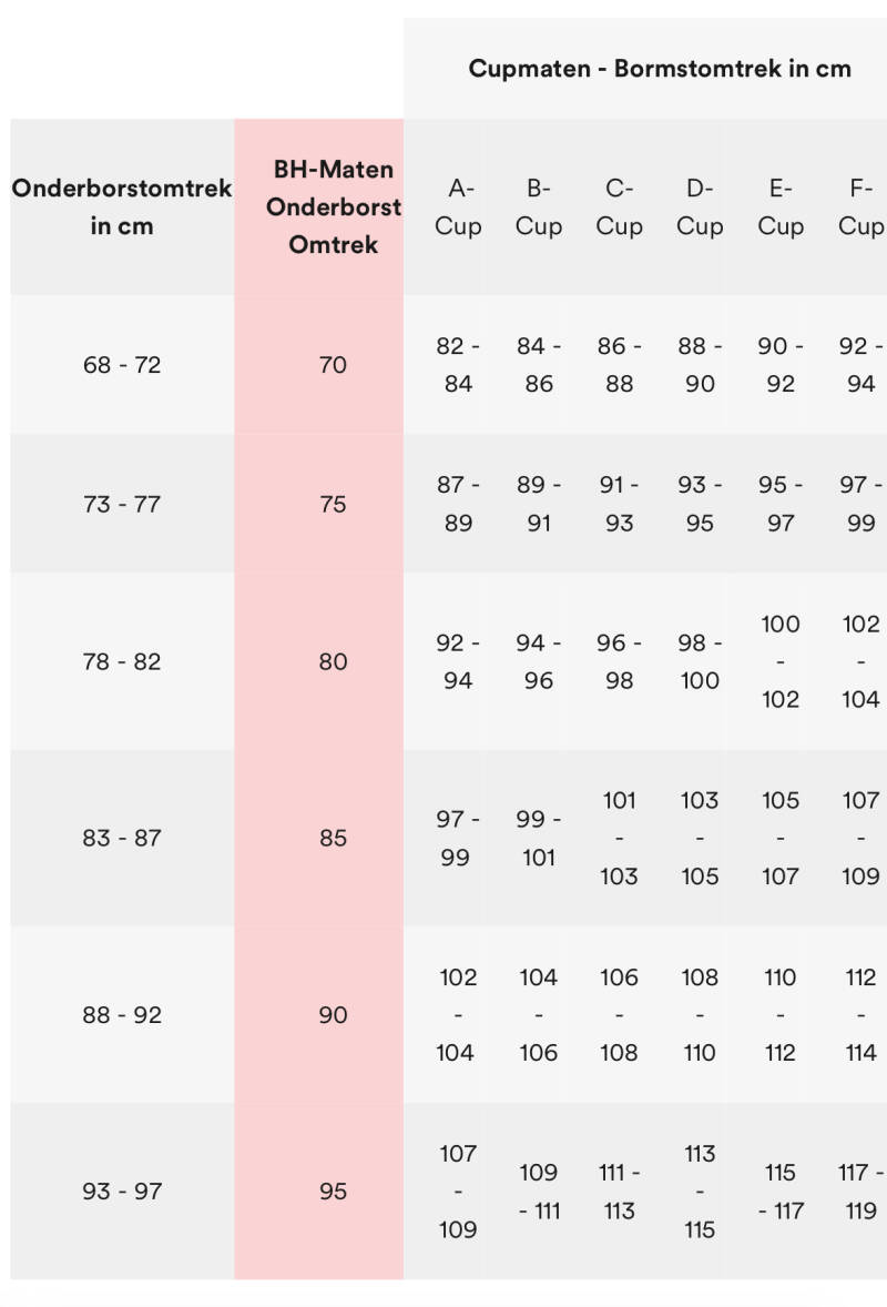 - De borstomtrek meet u horizontaal rond het breedste deel van uw borst.