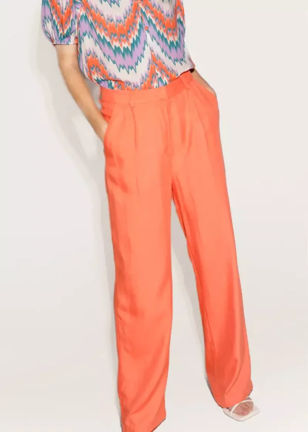 • Oranje losvallende broek met steekzakken