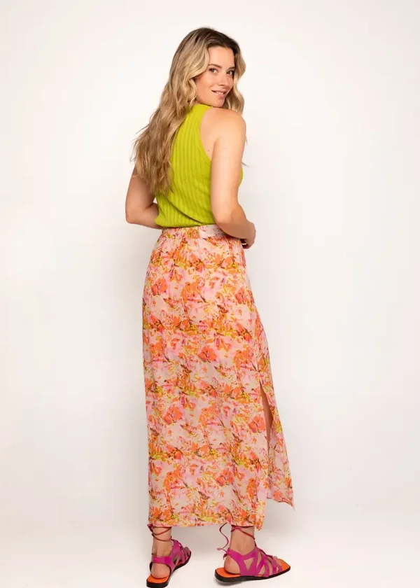 - Lange rok met bloemenprint en knoopsluiting.