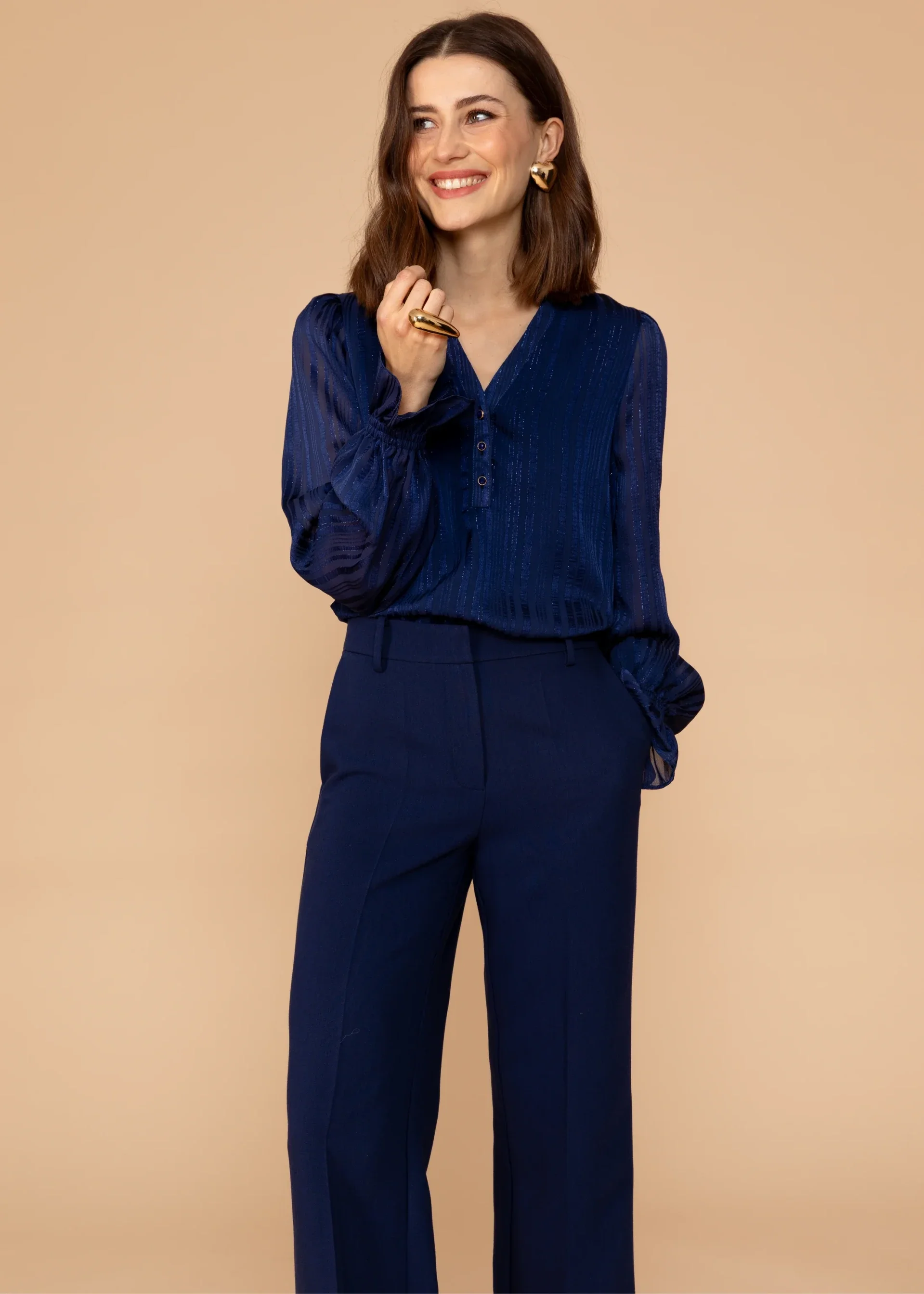 - Het model is 177 cm en draagt maat S