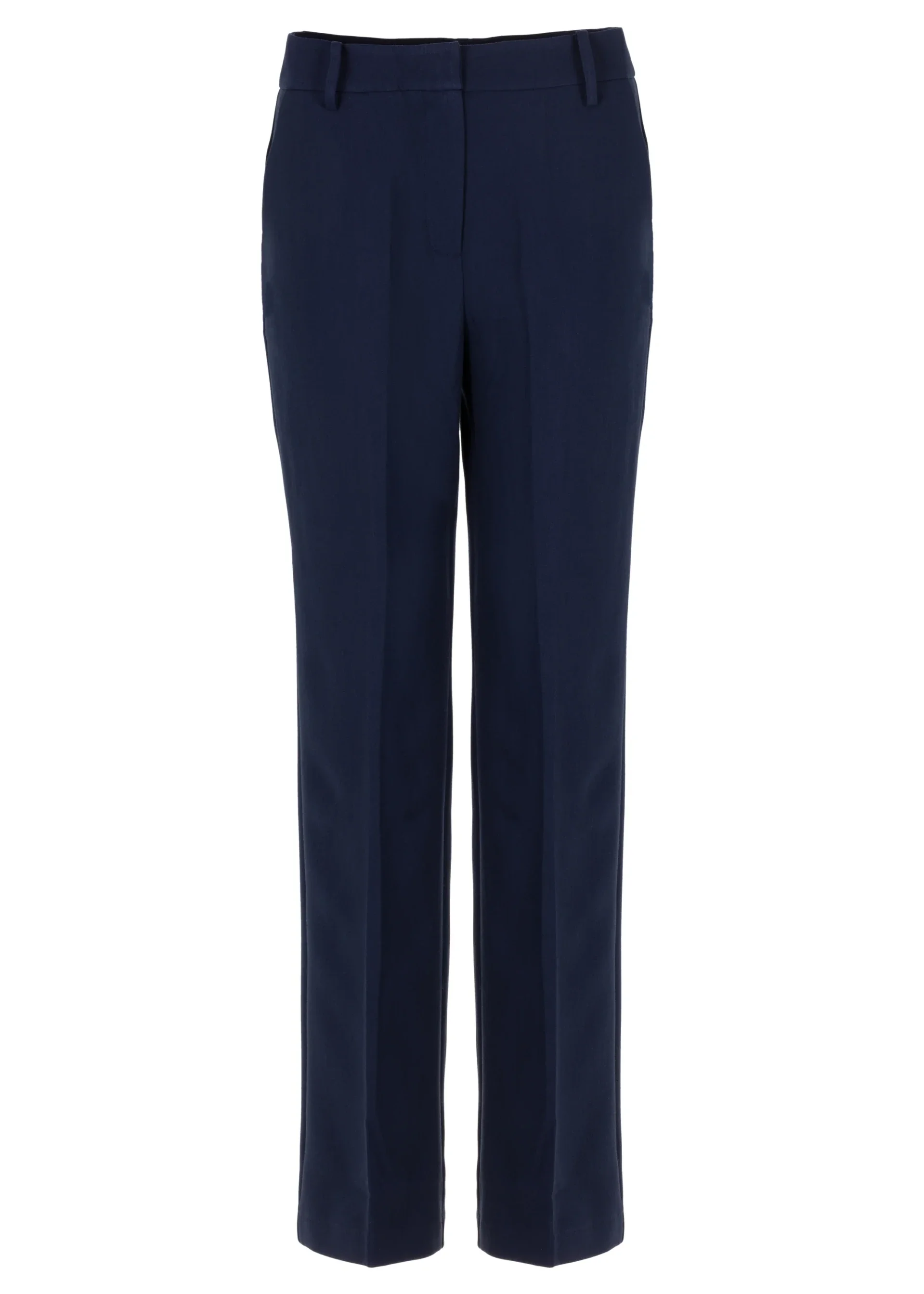 Deze stijlvolle high-rise pantalon is gemaakt van een comfortabele polyester-viscose blend, perfect voor een moderne en verfijnde look. De broek heeft riemlussen en handige insteekzakken voor een functionele maar chique uitstraling.