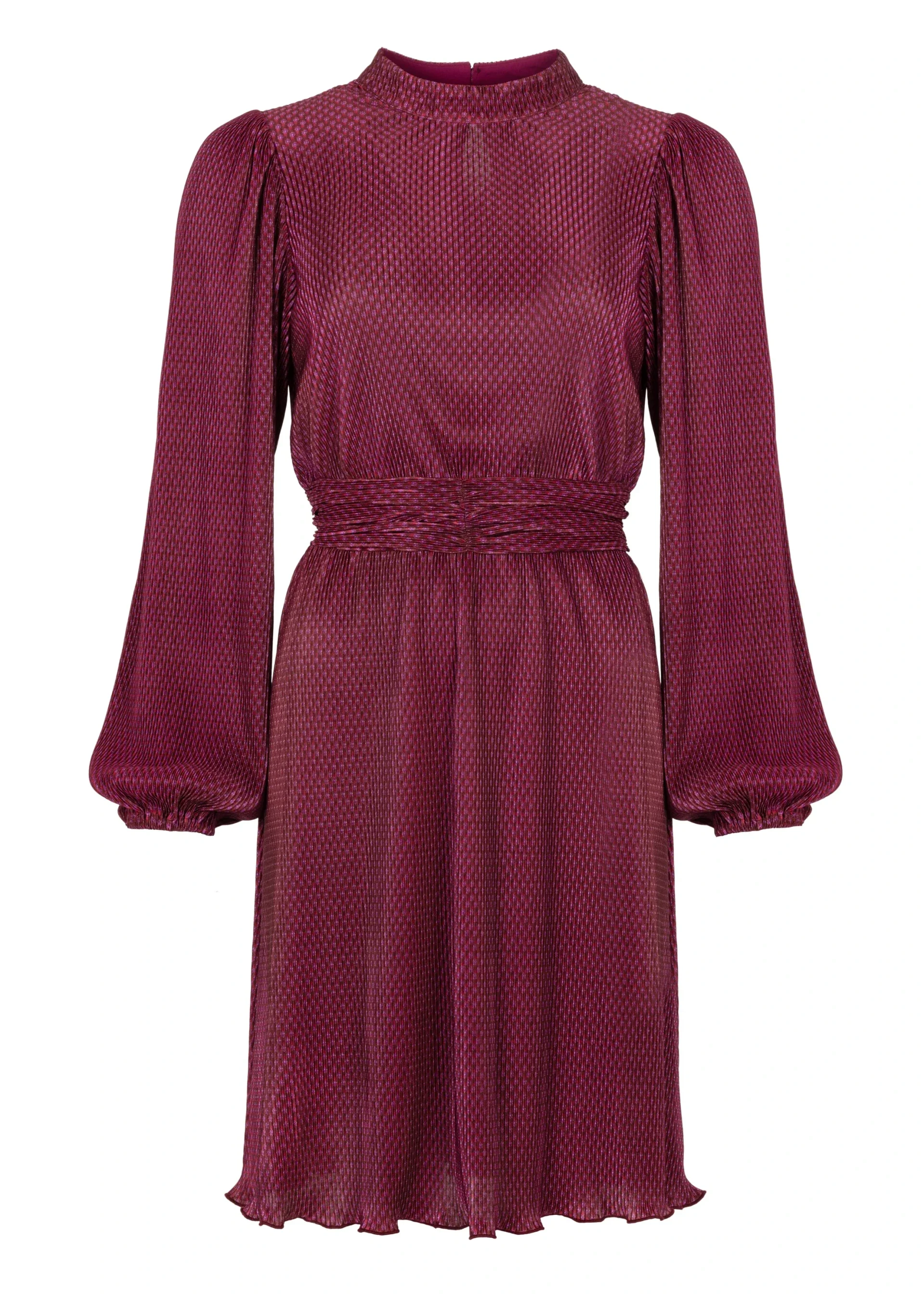 Deze stijlvolle, korte plissé jurk in de kleur Multi Pink is een elegante keuze voor verschillende gelegenheden. De jurk heeft een verfijnde uitstraling.