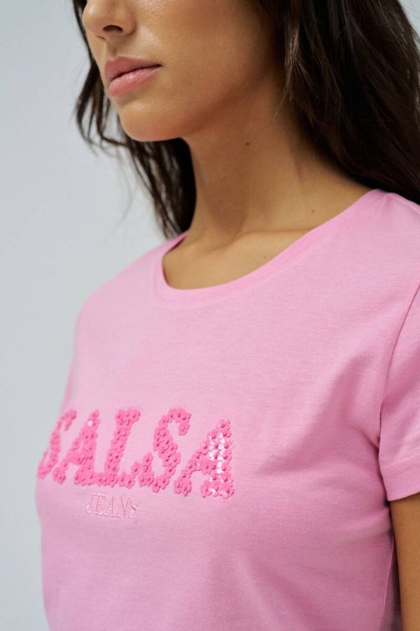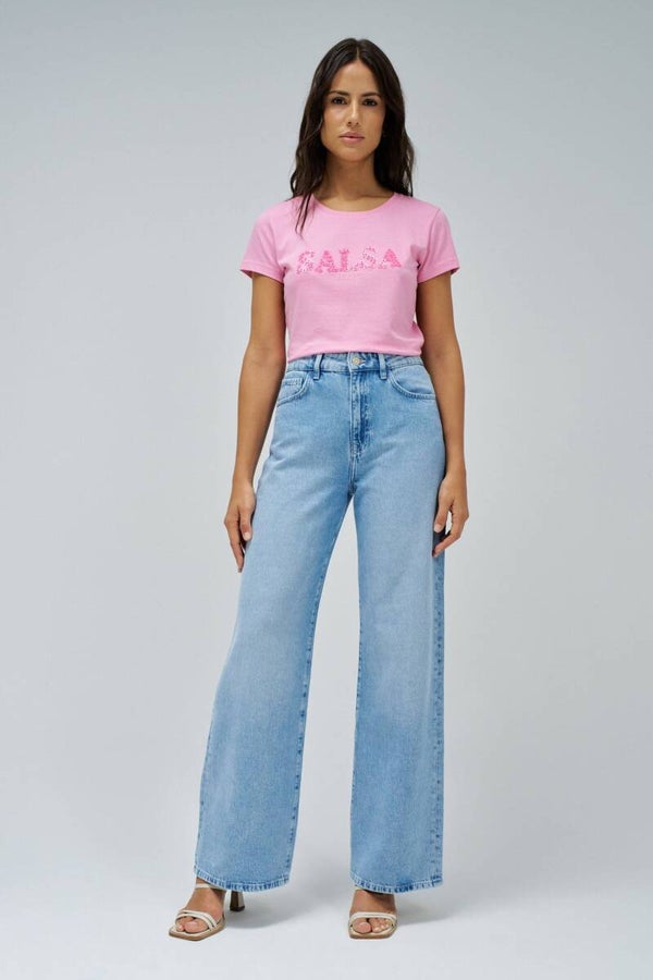This t-shirt combines minimalism and elegance, perfect for a casual look with a special detail. The branding decorated with floral appliques adds a delicate and sophisticated touch to the piece. With a slim fit, it enhances the silhouette comfortably, while the classic round neckline ensures versatility for different combinations.