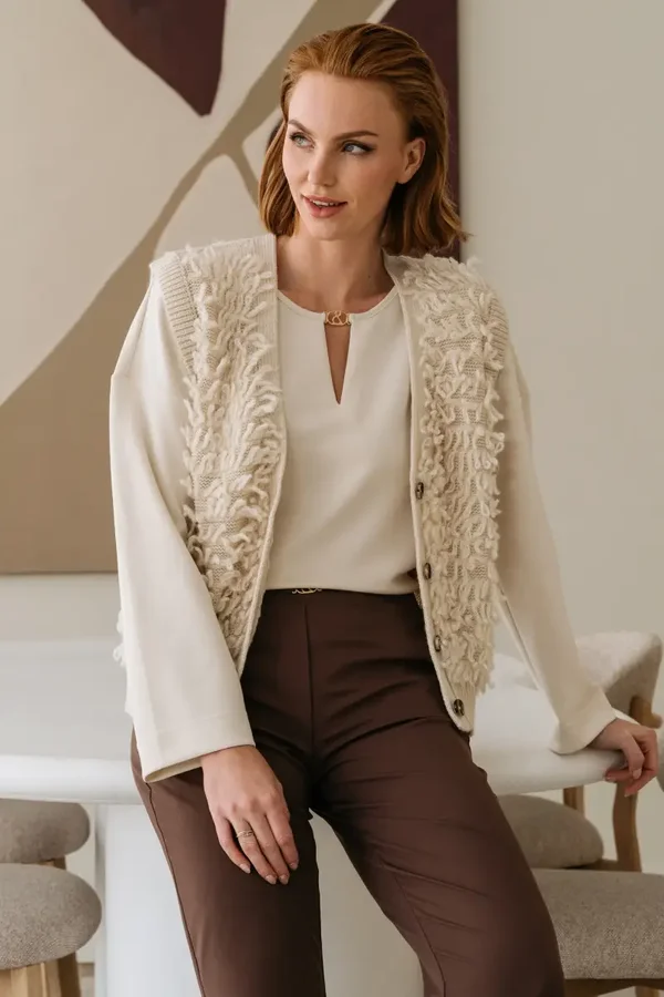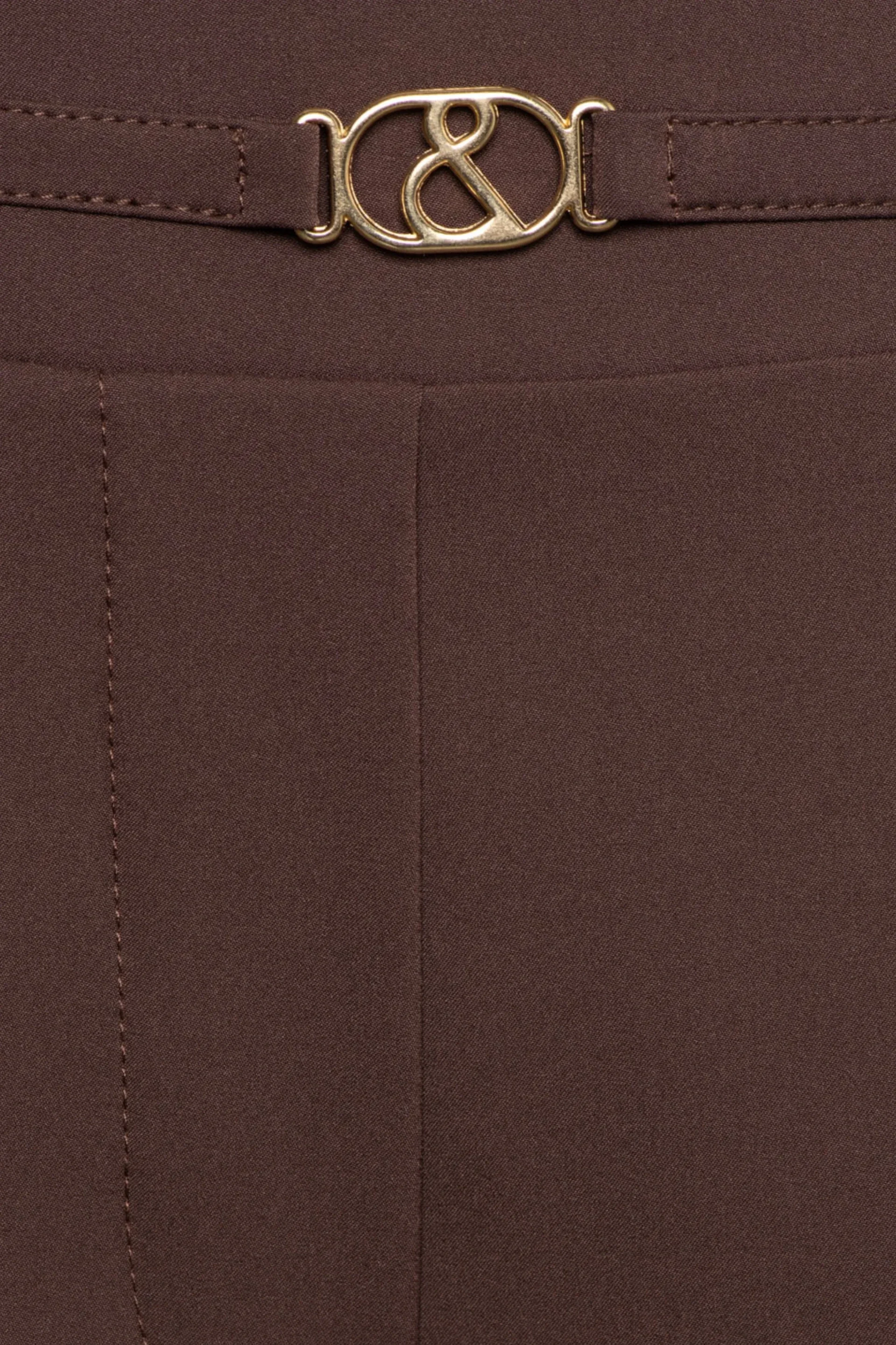 Travel Broek Pola Chocolate van &Co Woman is een rechte broek met een verzorgde pasvorm en elegante uitstraling. De gladde tailleband is afgewerkt met een goudkleurige siergesp met logo. De stevige travelkwaliteit en warme chocoladetint maken dit een stijlvol item voor zowel zakelijke als casual looks.
