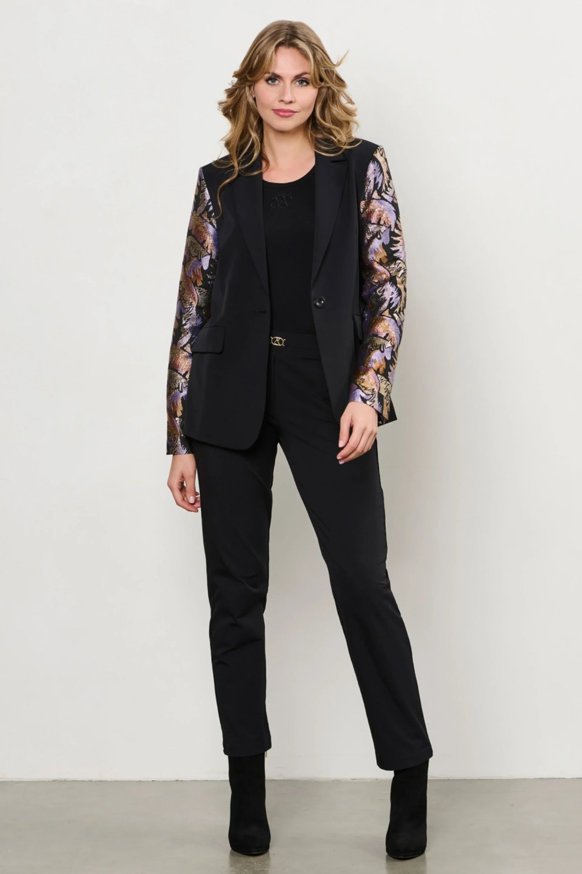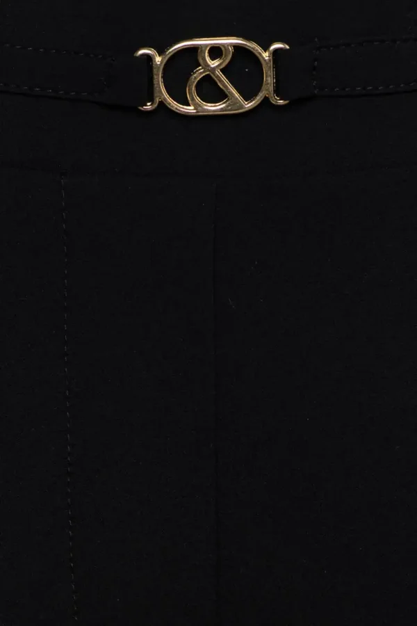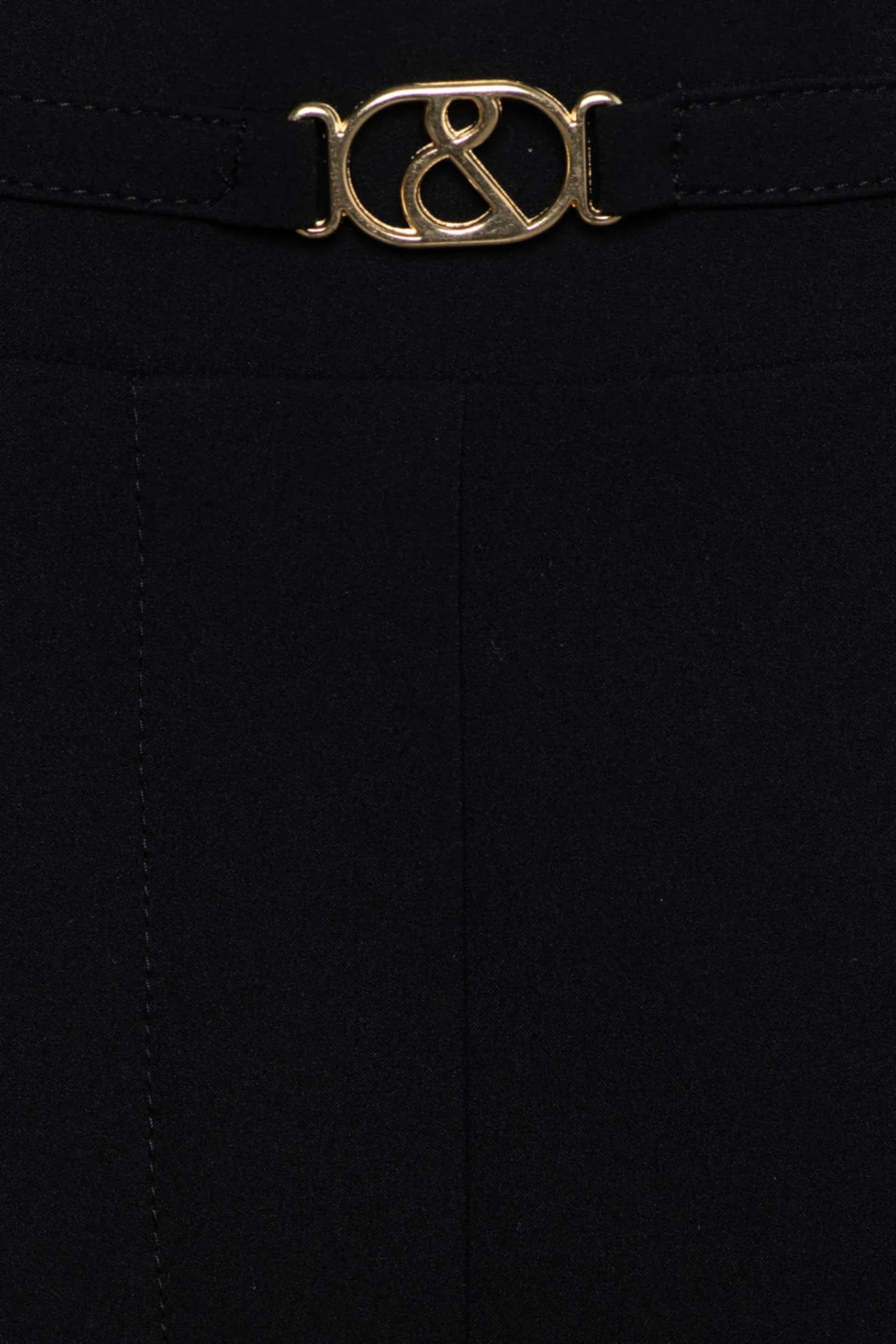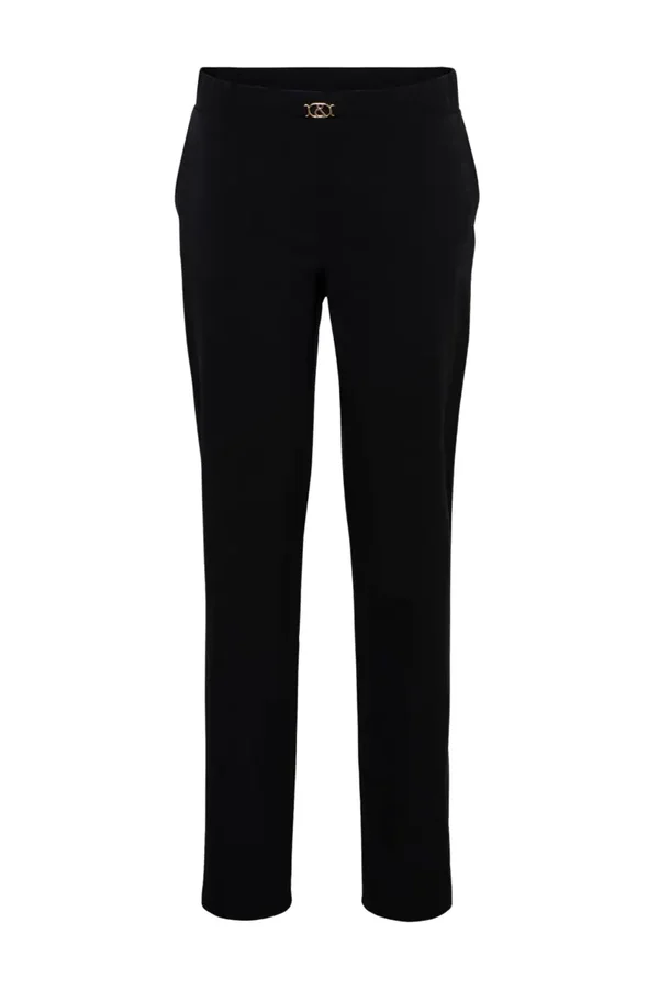 Travel Broek Pola Black van &Co Woman is een moderne, rechte broek met een comfortabele pasvorm en een stijlvolle uitstraling. De gladde tailleband is afgewerkt met een subtiele goudkleurige siergesp met logo. Gemaakt van stevige travelkwaliteit in tijdloos zwart.