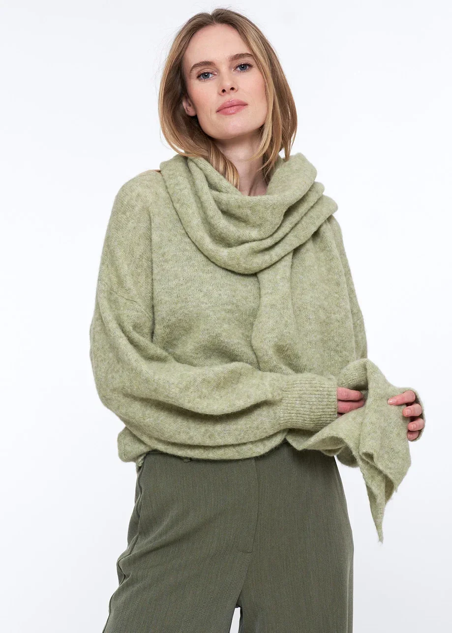 This knitted sweater is a subtle statement piece that effortlessly combines warmth and style. Crafted from a luxurious blend of wool, polyamide, and wool-viscose with a hint of stretch, it offers a comfortable fit and a soft hand feel. The deep V-neckline and slightly ballooned sleeves create a modern, feminine silhouette that's perfect for everyday wear.