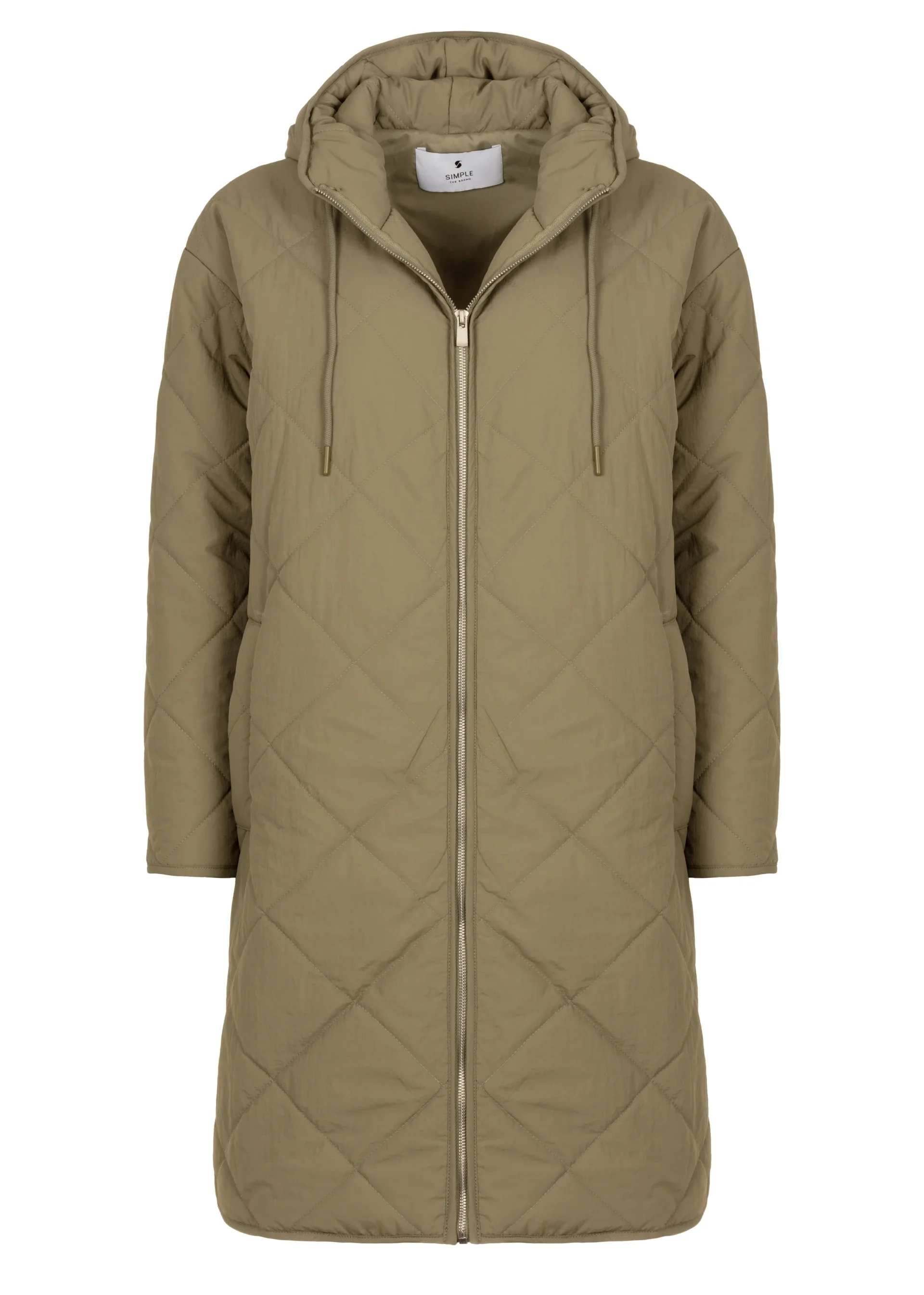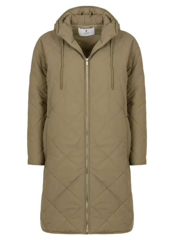 - Long quilted coat with diamond pattern