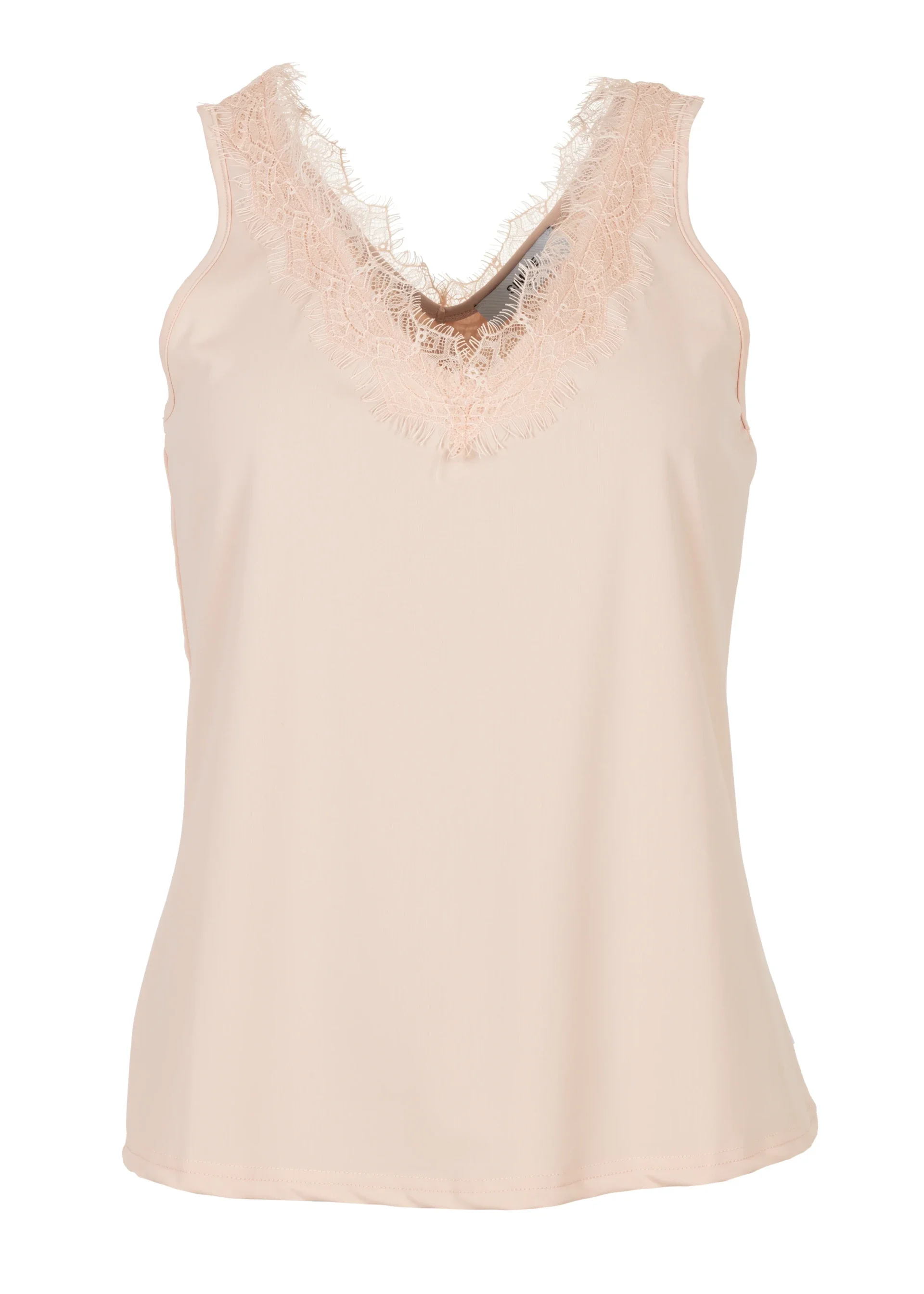 This refined tank top is crafted from a lightweight polyester-spandex blend with a soft touch, offering both comfort and a stylish appearance. The straight fit and deep V-neckline make it a versatile piece that transitions effortlessly from casual to chic. Perfect to pair with tailored trousers or a flowing skirt for a timeless look.
