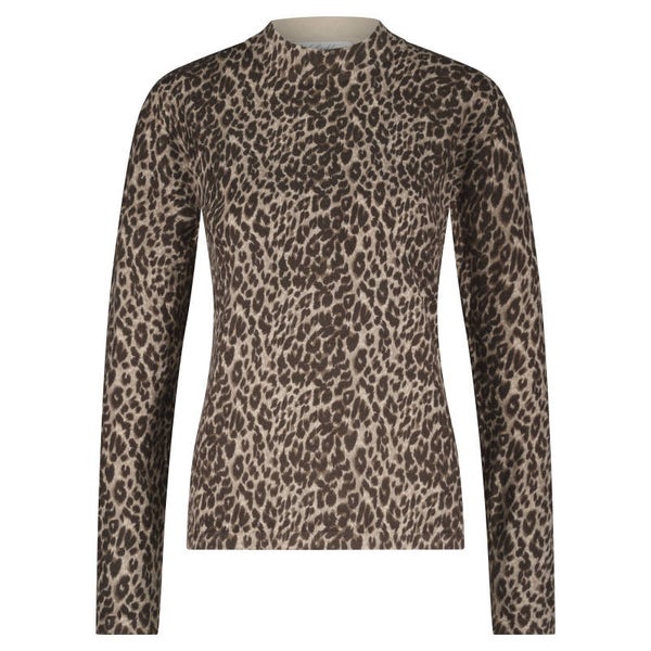 De Sweet Animal Print is een fijn gebreide top met een leopard print. Deze top heeft lange mouwen en een opstaande ronde hals. Verkrijgbaar in de kleuren black & mid brown.