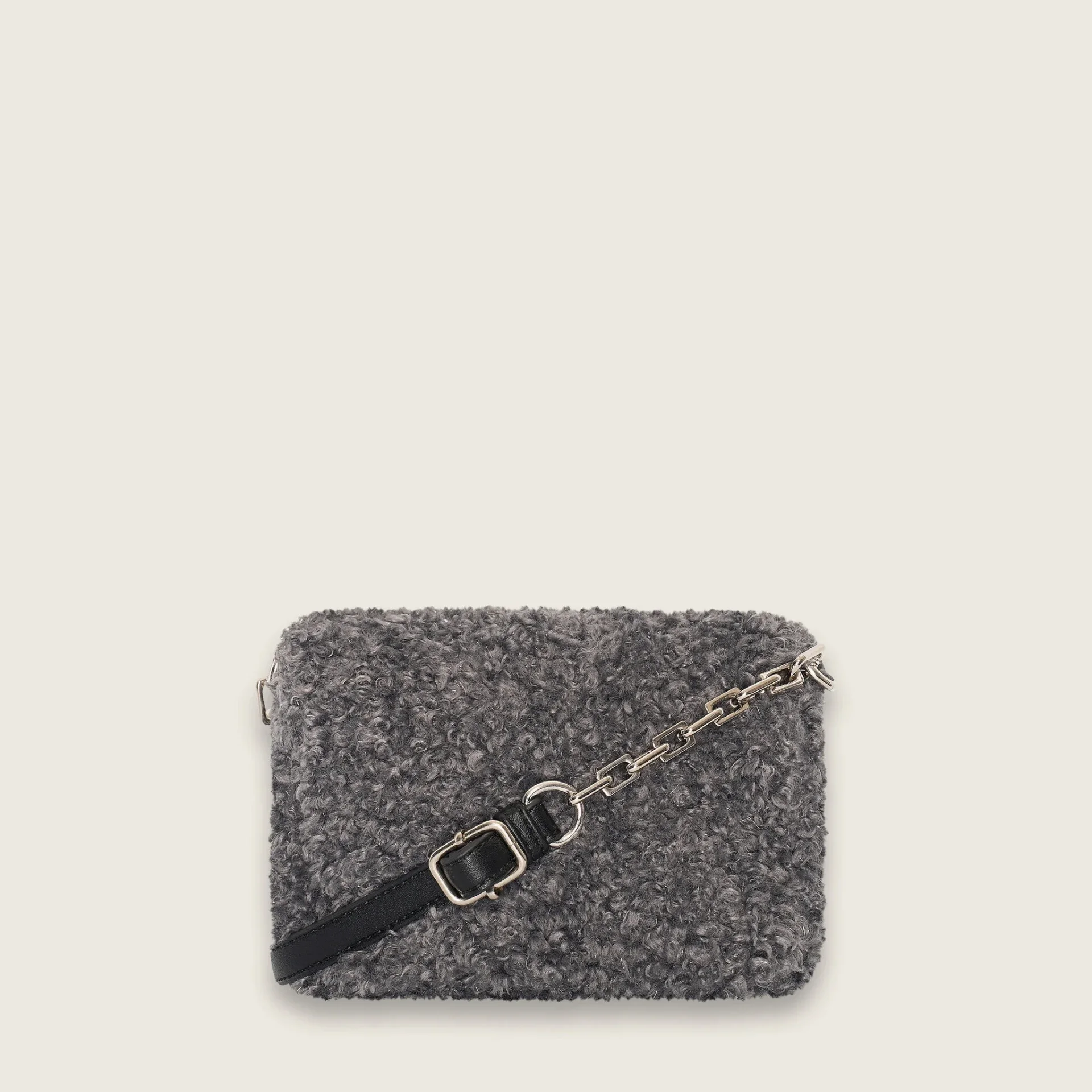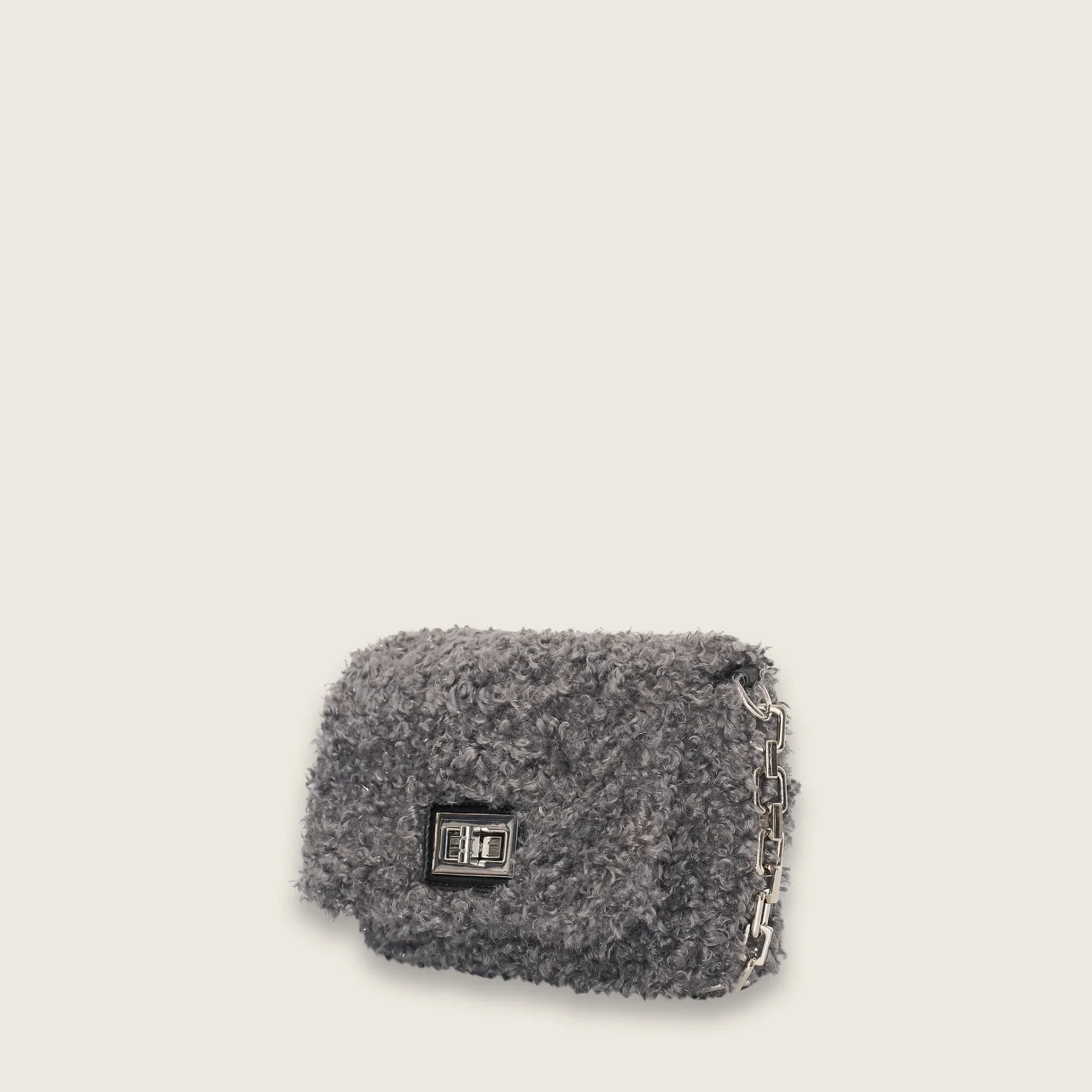 Deze fluffy antraciet Teddy crossover , is een mooie toevoeging op je garderobe dit seizoen. De crossbody tas heeft een niet verstelbare schouderketting. Aan de binnenkant heeft deze tas een hoofdcompartiment met één binnenvakje met rits. De tas wordt gesloten met een draaisluiting. De metaalkleur is zilver. De afmetingen (breedte / hoogte / diepte) van deze tas zijn 20x13x12