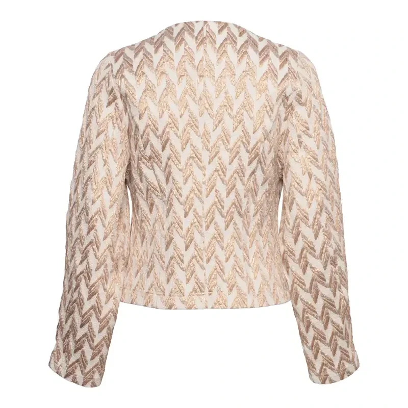 Dit mooie korte jasje is uitgevoerd in een jacquard-kwaliteit.