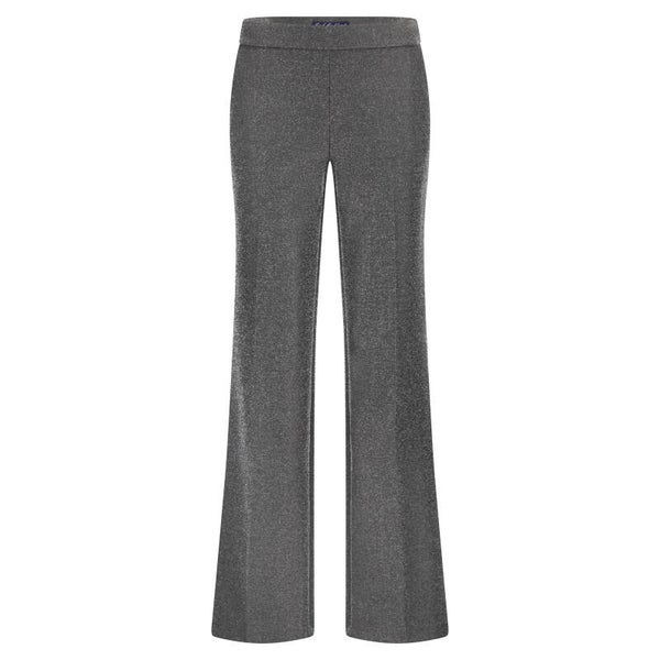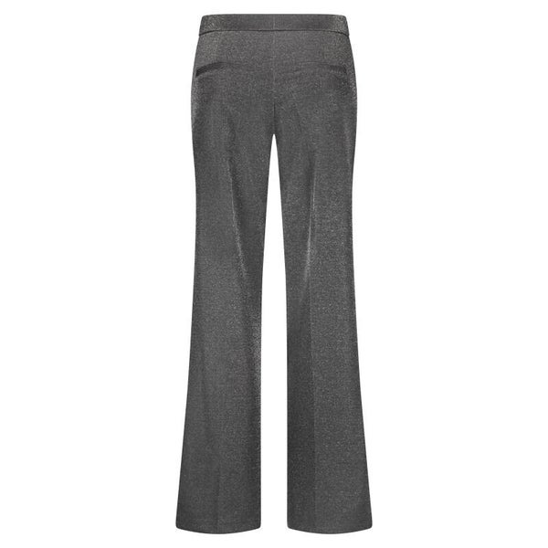 De Claudette Lurex is een wide leg broek gemaakt van een glitter lurex stof. Deze broek is aansluitend op de heup en loopt vanaf de bovenbeen wijd uit. De Claudette Lurex heeft een comfortabele hoge taille, een elastische tailleband, steekzakken en paspelzakken aan de achterkant.