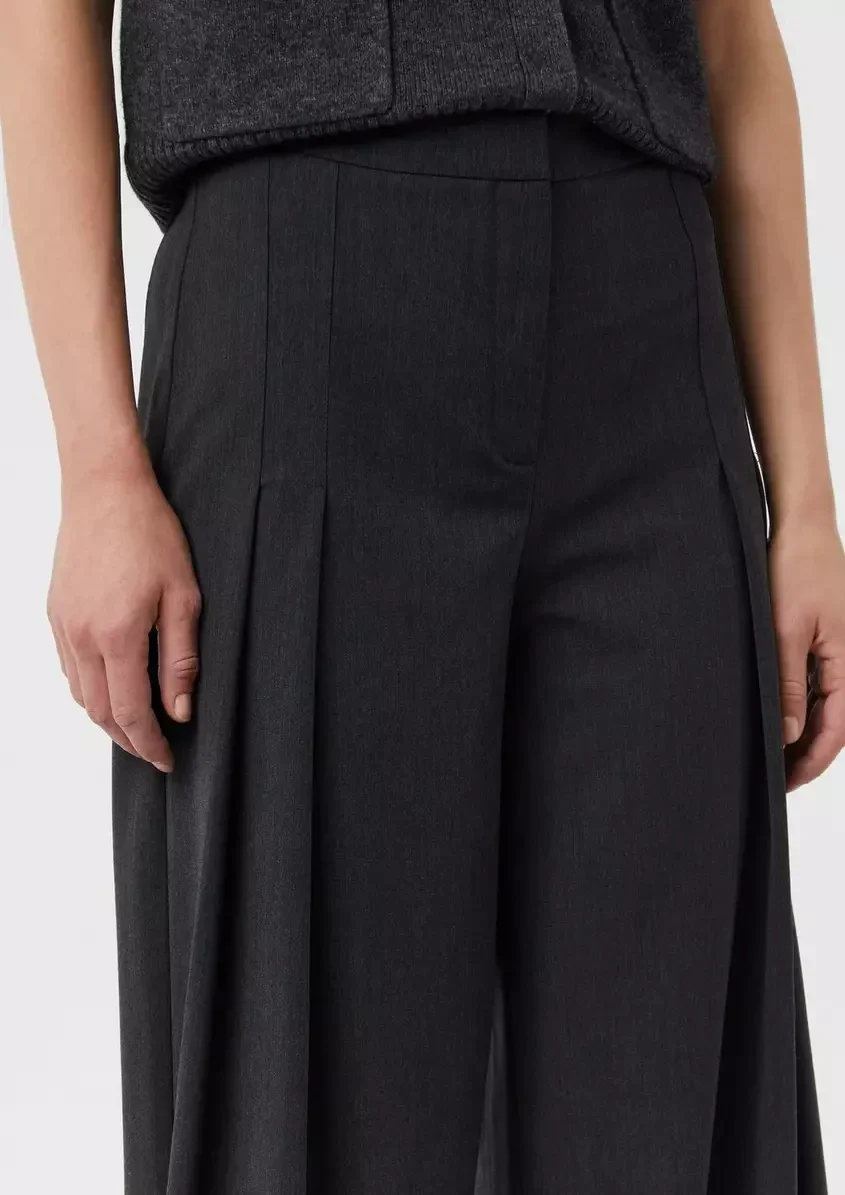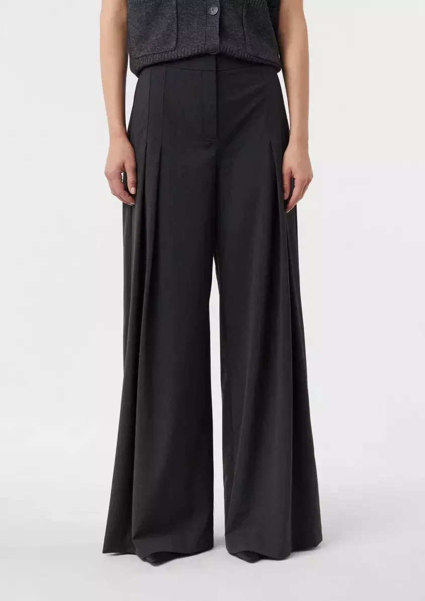 Elevate Your Style With These Flowing Wide-Leg Trousers. Crafted From A Luxurious Wool Blend, They Exude Elegance With Their High-Rise Waist And Front Pleats. Perfect For Casual, Business, Or Party Wear, You'll Appreciate The Clean Lines And Feminine Silhouette. The Side Pockets Add Practicality To This Versatile Piece. Pair With Heels For A Sophisticated Look Or Trainers For A Chic, Laid-Back Ensemble.
