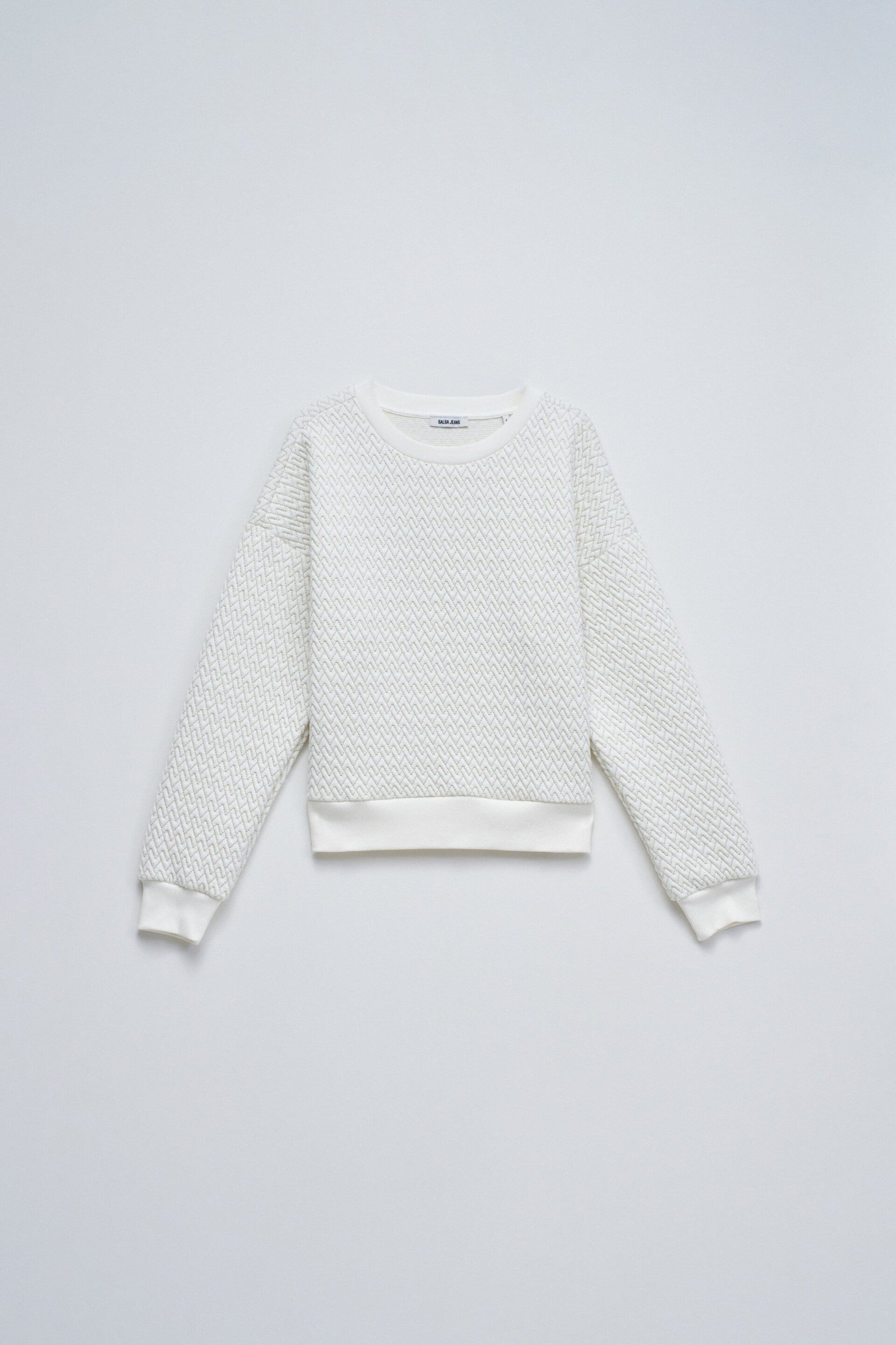 Jacquard sweatshirt in raw colour, with a regular fit that ensures comfort and versatility. It features long sleeves, a classic round neckline, and a careful finish that makes it ideal for casual or more sophisticated combinations.