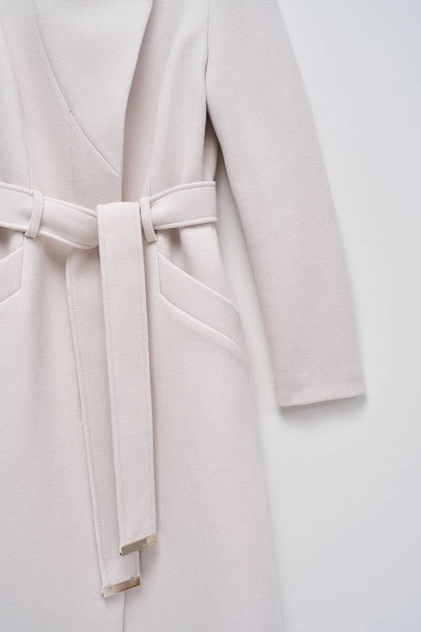 Elegant, timeless and very feminine... that's the long Grace, our signature woollen coat that will be your autumn-winter must-have. Made from high-quality wool and designed to adapt elegantly to the body of each woman at all times, it?s the perfect choice both for casual and formal occasions. Sober and distinctive, it's fully lined on the inside, and has a concealed button opening, side pockets and button cuffs. We love the gold button detail on the collar and the detachable belt that you can adjust to redefine your waist as you please.