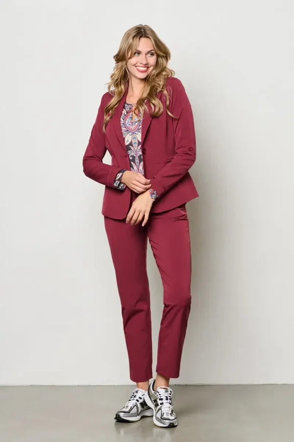 De Travel Broek Pola Wine Red van &Co Woman is een elegante slim fit broek in comfortabele travelstof. De rijke wijnrode kleur en de rechte pijp maken dit een veelzijdig item dat je zowel zakelijk als casual kunt dragen.