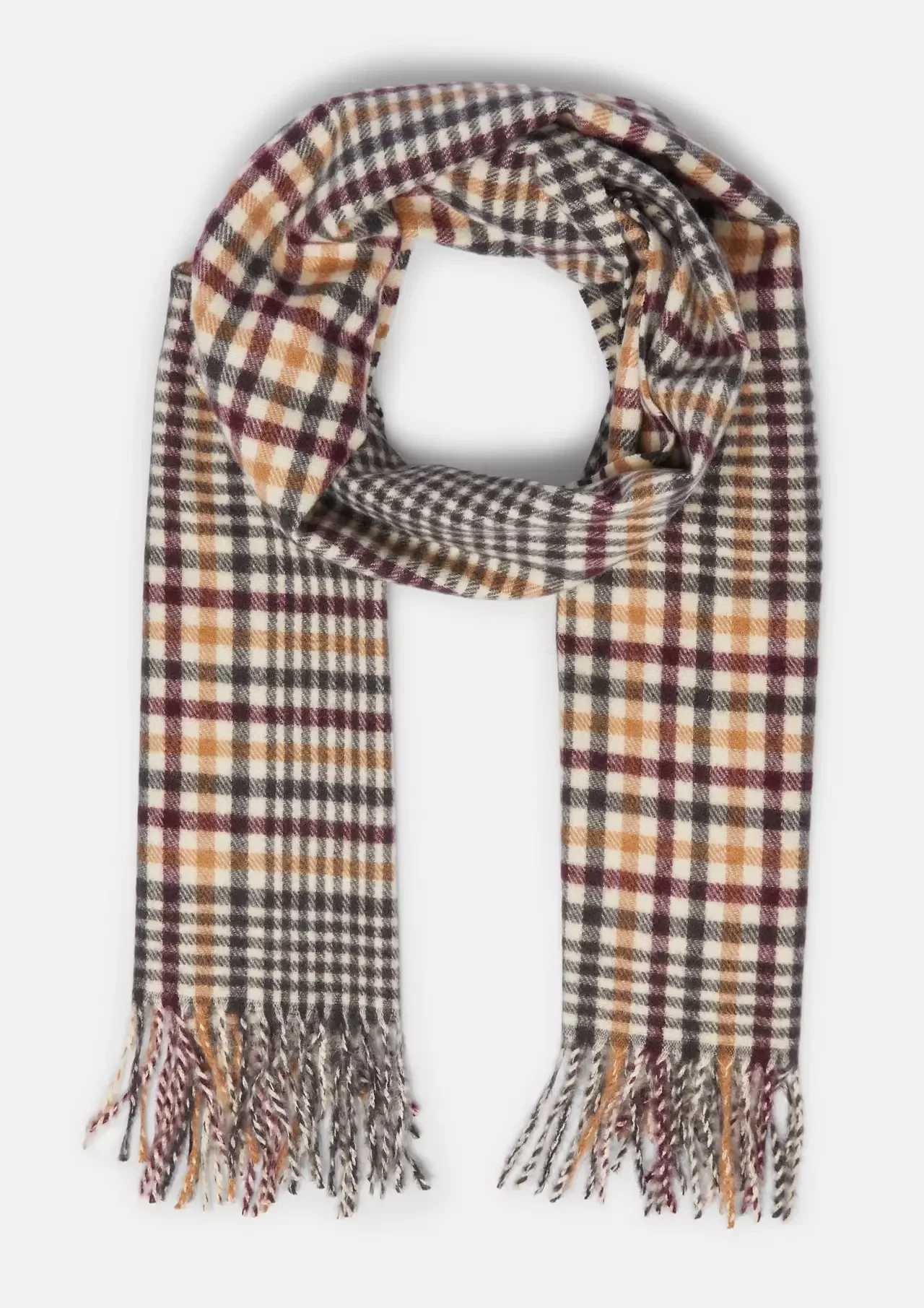 Wrap up in timeless style with this soft, fringed check scarf. The peached finish adds a luxurious touch to the classic pattern, whilst the cosy material ensures warmth on chilly days. Perfect for adding a sophisticated accent to your outerwear, this versatile piece effortlessly elevates both casual and formal looks. Style it loosely draped or traditionally wrapped for different effects.