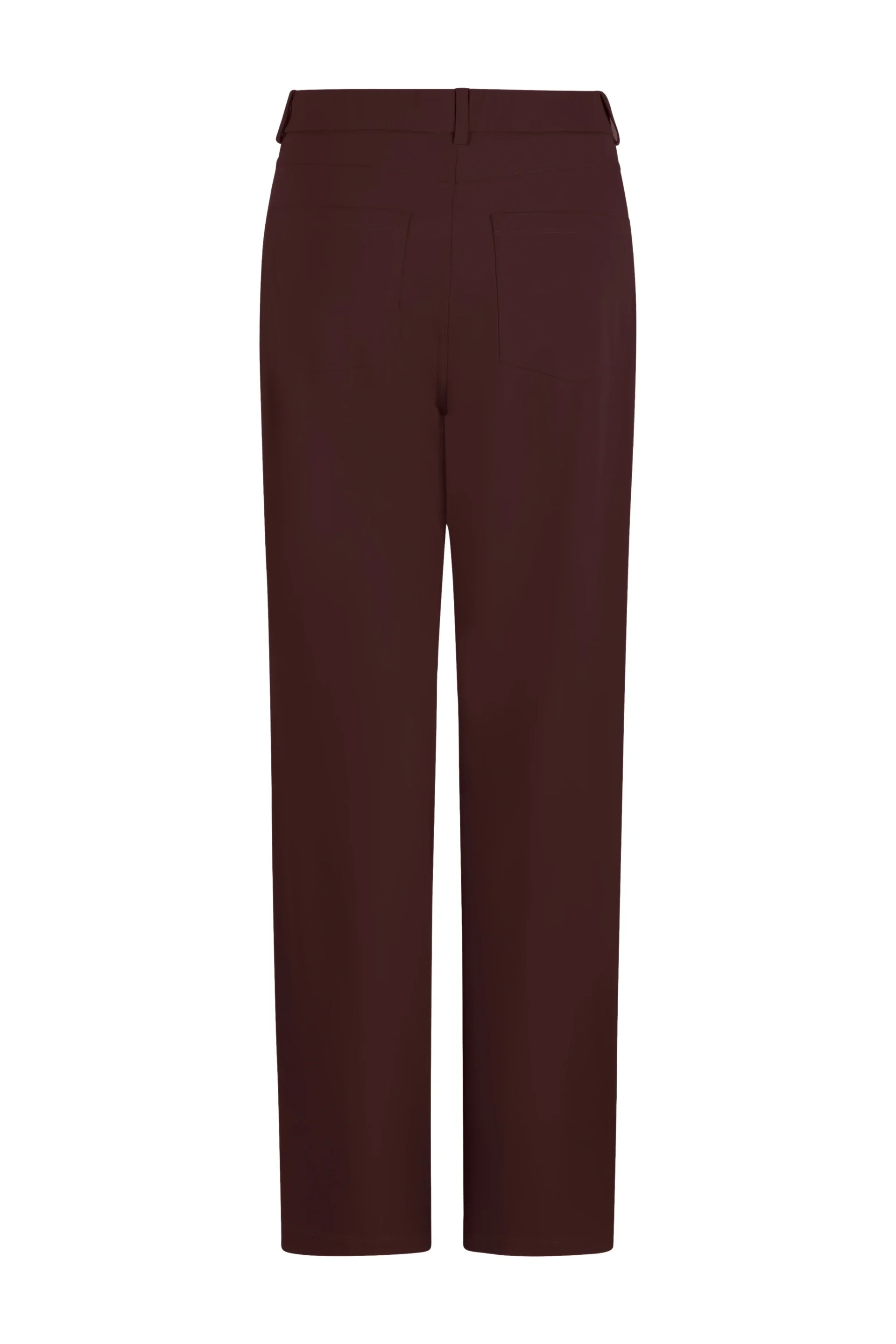 De Travel Broek Beau Bordeaux van Zoso is een comfortabele broek met rechte pijpen, persvouwen en steekzakken. Uitgevoerd in kreukvrije travelkwaliteit voor een elegante en praktische look.
