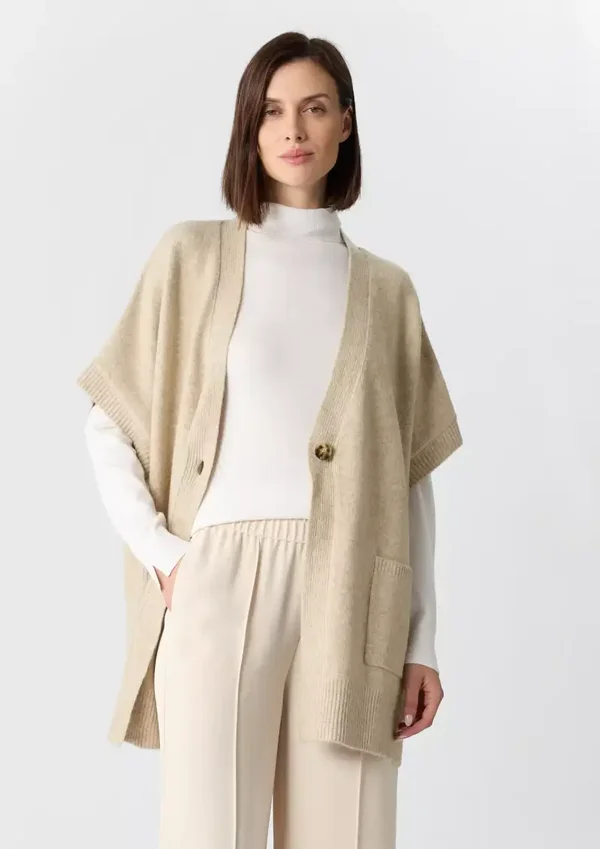 Stylish comfort meets timeless elegance: you'll love this soft indoor poncho with a practical button fastening. The warming cape flatters your silhouette and offers maximum freedom of movement. A versatile essential that is perfect for cosy hours at home and always looks elegant. Combine the poncho with slim-fit pants for a balanced look.
