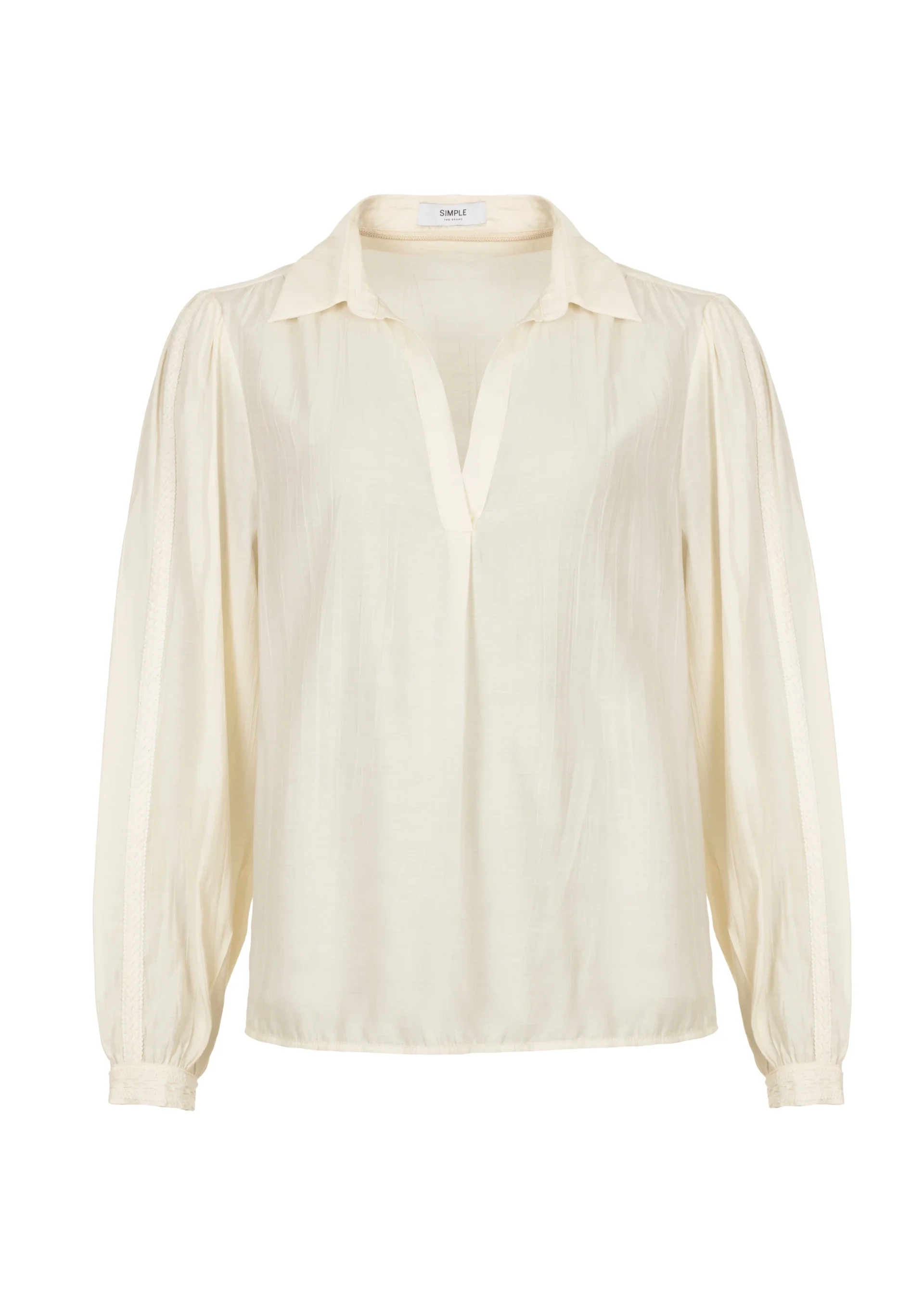De blouse is afgewerkt met een klassieke placket collar en lange mouwen met fijne details, wat zorgt voor een verzorgde en vrouwelijke uitstraling.