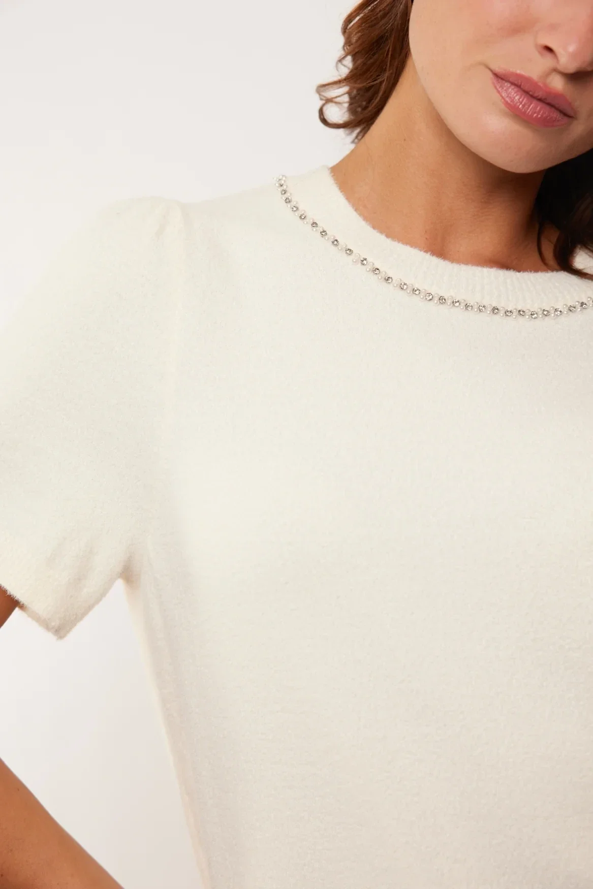 De Etta top is een verfijnd en comfortabel item dat moeiteloos luxe en draagbaarheid combineert. De zachte, fijngebreide stof voelt prettig aan en valt mooi langs het lichaam, terwijl de korte mouwen zorgen voor een vrouwelijke en moderne uitstraling. De subtiele afwerking langs de hals geeft de top net dat extra detail, waardoor hij zowel solo als onder een jasje perfect tot zijn recht komt. Een veelzijdig item dat zich eenvoudig laat stijlen voor verschillende momenten van de dag en niet mag ontbreken in je garderobe.