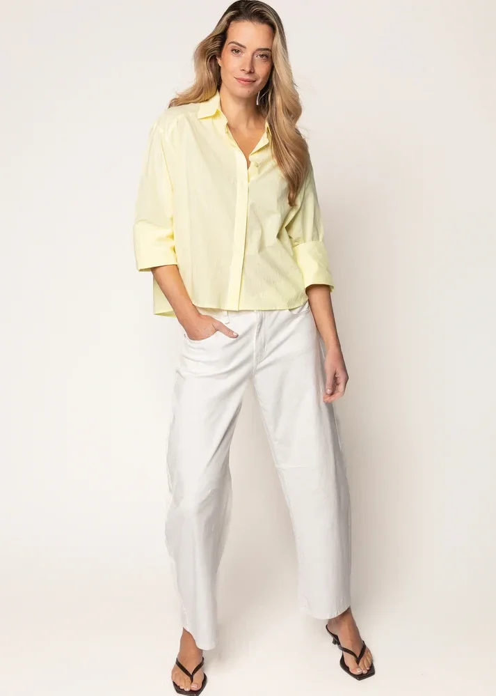 Deze blouse is uitgevoerd in een frisse katoen poplinkwaliteit die licht en comfortabel draagt. De soepele stof zorgt voor een nette en tijdloze uitstraling. Het rechte silhouet geeft de blouse een moderne en veelzijdige look, terwijl de mouwen met roll-up manchet een speels en casual detail toevoegen.